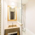 The apartment includes a well-equipped kitchen, open to the living room, ideal for preparing meals. The bathroom features a bathtub, and a separate toilet adds convenience. A spacious dining area with a table and 5 chairs is perfect for family meals. Paid public parking is available 50 meters from the residence, and additional services like daily cleaning and linen change can be arranged for an extra cost.
