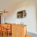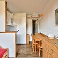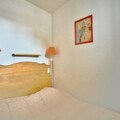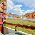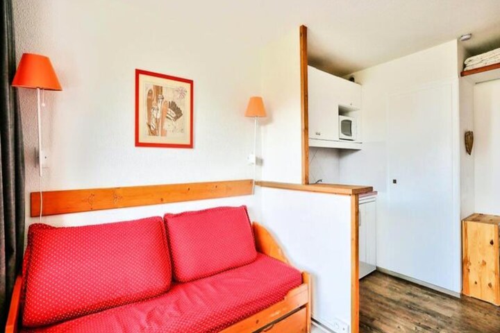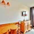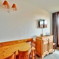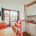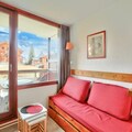 This cozy accommodation offers space for up to 4 guests, featuring a living room with a sofa bed and trundle bed (sleeps 2) and a private bedroom with a double bed. The property is pet-friendly for an additional fee and prior approval. Guests will enjoy a balcony with stunning mountain views, ski-in/ski-out access, and conveniences such as a safe, ski locker, and television. Bed linen, towels, and end-of-stay cleaning are available for a supplementary cost, ensuring a hassle-free stay.