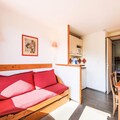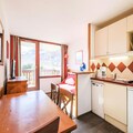 The chalet boasts a fully equipped kitchen open to the living area, perfect for cooking and dining together at the six-seater table. The bathroom includes a bathtub, and a separate toilet adds convenience for guests. Public paid parking is available 50 meters away, and additional services like bed linens, towels, and end-of-stay cleaning can be arranged for a fee. This well-maintained property ensures a comfortable and memorable vacation in the Alps.