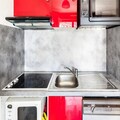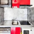 The studio is thoughtfully designed with a modern kitchen open to the living area, equipped with essential appliances for easy meal preparation. The bathroom features a bathtub, complemented by a separate toilet for added convenience. Additional amenities include a ski locker, hairdryer, ironing facilities, and optional Wi-Fi, bed linens, and end-of-stay cleaning services for a stress-free departure.