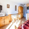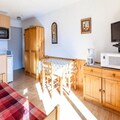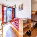 This charming apartment in the Val d'Huez residence accommodates up to four guests in comfort. Located in the Eclose district, it features a bedroom with a double bed, a cabin area with two bunk beds, and a cozy living room with a sofa. Guests can unwind on the private balcony, furnished with a table and bench seating, while taking in mountain views. Pet-friendly and situated at the foot of the slopes, with ski lifts just 100 meters away, this property is an excellent choice for ski and snowboarding enthusiasts.