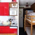 This cozy 17m² studio is an ideal choice for a couple or small family seeking a convenient and compact mountain retreat. Located on the third floor, it features an east-facing balcony, perfect for enjoying morning sunrises. The habitable hall includes two bunk beds suited for children, while the living room offers a comfortable sofa bed and a TV for relaxation. Please note that this property is not pet-friendly. A ski locker and proximity to a ski shuttle just 50 meters away make it a great base for winter sports enthusiasts.