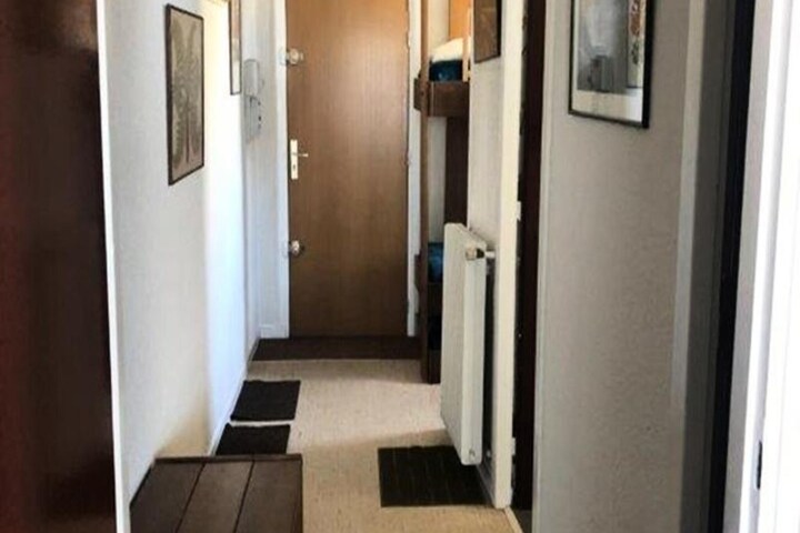 This cozy 30m² studio with a habitable hall offers an ideal retreat for up to four guests. Located on the fourth floor, the space features a habitable hall with two bunk beds, perfect for children or additional guests. The living room includes a corner sofa bed (140cm) and a small non-convertible sofa, along with a TV for relaxing after a day of activities. A south-facing balcony provides stunning views, and a dedicated ski cupboard ensures convenient storage. Please note, this property does not accommodate pets, and bed linen, towels, and end-of-stay cleaning are not included.