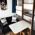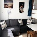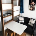 The studio is thoughtfully equipped for a comfortable stay. The kitchen features an oven, four induction hobs, a microwave, and a dishwasher, making meal preparation simple and efficient. The bathroom includes a bathtub and a washing machine, with a separate toilet for added convenience. This well-appointed space ensures a delightful blend of functionality and comfort for your mountain holiday.