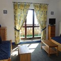 The apartment is well-equipped with modern amenities to enhance your stay. The kitchen includes a microwave, refrigerator, dishwasher, and two ceramic hobs, making meal preparation a breeze. The bathroom features a relaxing bathtub, complemented by a separate WC for added convenience. A secure ski locker is also provided, ensuring your equipment is safely stored after a day on the slopes.