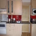 The apartment is equipped with a well-appointed kitchen, including 4 ceramic hobs, an oven, microwave, refrigerator, and dishwasher, ideal for preparing meals. The bathroom features a shower, washer-dryer, and separate WC for added convenience. Heating ensures a cozy environment, and bed linen, towels, and end-of-stay cleaning are not included, offering flexibility during your stay.