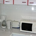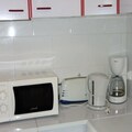 The apartment is equipped with a fully functional kitchen, including a ceramic hob, oven, microwave, refrigerator, extractor hood, and dishwasher, perfect for preparing your own meals. The bathroom features a shower and WC for convenience. Heating ensures a comfortable stay, and bed linen, towels, and end-of-stay cleaning are not included, allowing for flexibility during your visit.