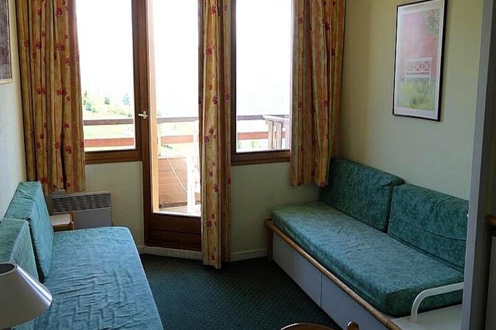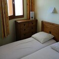 This 35m² duplex apartment is a cozy and functional space, perfect for families or small groups. The living room features two pull-out beds (1 person each) and a TV for your relaxation. The habitable hall offers two bunk beds, while the bedroom has two single beds (80 x 200) that can be joined together for added comfort. The property is not pet-friendly, ensuring a peaceful environment for all guests. A south-facing balcony offers a beautiful view of the station, and a ski closet is available for storing your ski equipment.