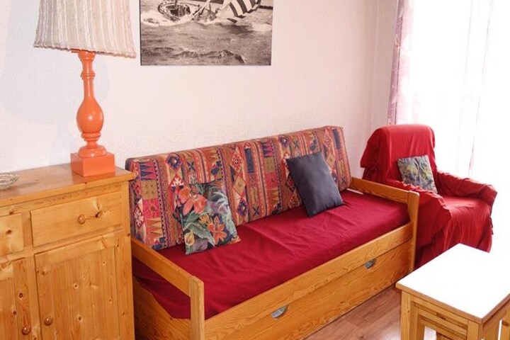 This charming studio apartment with a habitable hall offers a comfortable and functional stay for up to 4 guests. The habitable hall includes a double bed (140), while the living room features a pull-out sofa bed (2x1 person) and a TV for your relaxation. The apartment is not pet-friendly, ensuring a quiet and serene environment. Guests can enjoy the Eastern balcony and ski locker (No. 31) for easy storage of ski equipment.