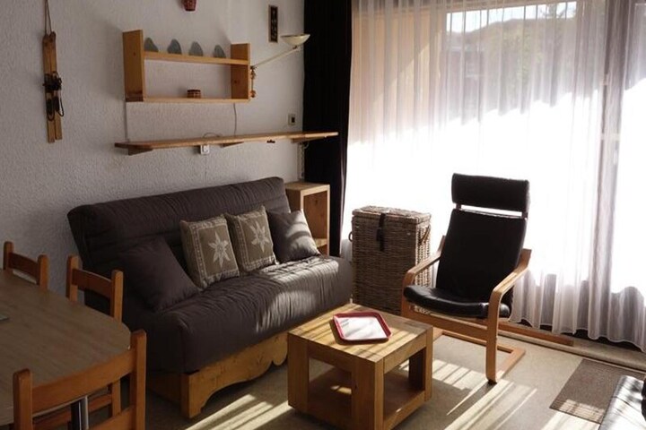 This spacious 39m² studio apartment offers a comfortable stay for families or small groups, accommodating up to 6 guests. The habitable hall features two folding bunk beds, ideal for children, as well as two additional bunk beds for extra sleeping space. The living room is furnished with a sofa bed (160x200), perfect for relaxing after a day of adventure. The property is not pet-friendly, ensuring a peaceful environment for all guests.