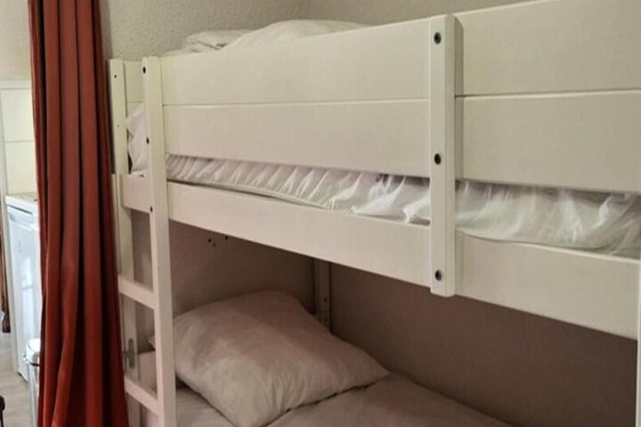 This 28m² apartment offers a comfortable and well-equipped space for guests, featuring a bedroom with a double bed (140 x 190) and a habitable hall with two bunk beds (90 x 190). The living room is furnished with a sofa bed (140 x 190) and a TV, providing a cozy area to unwind after a day of outdoor activities. The property is not pet-friendly, ensuring a quiet and peaceful environment for all guests.