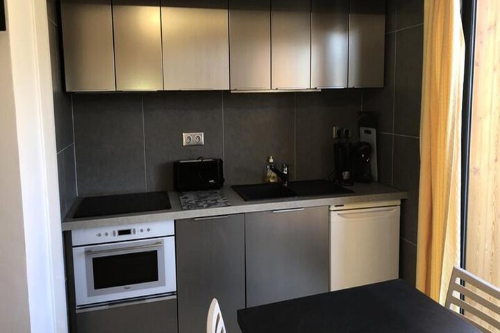 This cozy, renovated 24m² studio apartment offers a practical and comfortable space for your stay, featuring a living room with a sofa bed and two bunk beds, perfect for accommodating up to four guests. The property is not pet-friendly, ensuring a quiet and relaxed atmosphere for all visitors. The modern design and thoughtful layout make it a great choice for those seeking comfort and convenience.