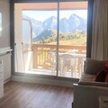 The apartment features a fully equipped kitchen with 2 ceramic hobs, a hood, a dishwasher, a refrigerator, a microwave, and a washing machine, making it ideal for preparing meals or doing laundry during your stay. The bathroom includes a bathtub and a separate toilet for your convenience. A large south-facing balcony offers a magnificent view, while a ski locker (n°B43) is available for storing your winter equipment. Bed linen, towels, and end-of-stay cleaning are not included.