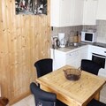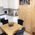 The apartment features a fully equipped kitchen in the living room, including a dishwasher, traditional oven, microwave, ceramic hob, and a large refrigerator. The bathroom offers a relaxing bathtub and a separate toilet for added convenience. A ski locker is also provided to store your gear securely. Bed linen, towels, and end-of-stay cleaning are not included, and the apartment is heated for added comfort during your stay.