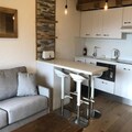 The apartment comes fully equipped with a kitchen, including a ceramic hob, multi-function oven, dishwasher, and refrigerator, allowing you to prepare meals with ease. The bathroom features a bathtub, and there is an independent WC for added privacy. For your convenience, the apartment also offers a south-facing balcony with beautiful views and a ski locker to store your gear. Bed linen, towels, and end-of-stay cleaning are not included, and heating is available for comfort during your stay.