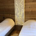 This spacious 250 m² chalet is the perfect retreat for large groups or families, offering ample sleeping arrangements. The ground floor features a bedroom with four bunk beds (90x200) and a bathroom with a separate shower and WC. Upstairs, you'll find three more well-appointed bedrooms, including a double bed in Bedroom 2 (160x200), two single beds in Bedroom 3 (90x200), and a double bed in Bedroom 4 (160x200) on the second floor. Bedroom 4 also includes a TV for added comfort. The chalet is not pet-friendly, ensuring a peaceful environment for all guests.