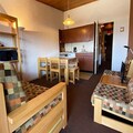 The apartment is equipped with a functional kitchen, featuring 3 electric hotplates, a refrigerator, a dishwasher, and a combined microwave, providing everything you need to prepare meals at your convenience. The bathroom includes a bathtub, and there is a separate toilet for added comfort. Enjoy the south-facing balcony, offering a perfect spot to relax and take in the mountain air, while a ski locker ensures safe storage for your equipment. Heating is available to keep you cozy throughout your stay.