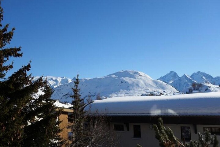 The kitchen is fully equipped with a dishwasher, electric oven, microwave, ceramic hob, and refrigerator, making meal prep convenient and easy. The bathroom features a bathtub with WC, ensuring comfort after a day of skiing. Additionally, the apartment includes a south-facing balcony, perfect for soaking up the sun, and a ski locker to store your equipment securely. Heating is available for your comfort throughout your stay.