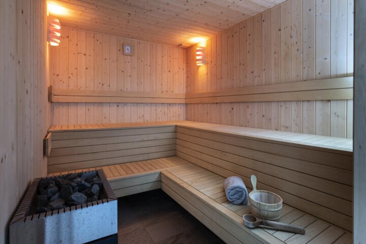 This spacious cabin accommodates up to 10 people, featuring five rooms designed for comfort and convenience. It includes a cozy living room perfect for relaxing, and a private balcony where you can enjoy the fresh air. The cabin offers a variety of sleeping arrangements, with one bedroom featuring a double bed and three others with two single beds each. Additionally, there is a cabin with two bunk beds, making it ideal for larger groups or families. The property has two shower rooms, one bathroom, and two toilets for added comfort. For ultimate relaxation, the cabin also includes a private sauna.