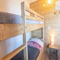 This thoughtfully designed 25m² apartment comfortably accommodates 2 adults and 2 children, making it ideal for couples or small families. The living area features a sofa bed, an open kitchen, and a dining space, creating a warm and inviting atmosphere for shared moments. A separate sleeping area with bunk beds ensures privacy for the little ones, while the balcony provides a serene spot to savor your morning coffee with stunning mountain views. Modern amenities such as bathroom products, linens, and beds made upon arrival add to the convenience, while optional services like Wi-Fi and additional cleaning cater to your needs.