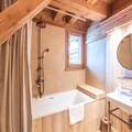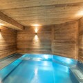 Spanning multiple floors, Chalet Loup accommodates up to 14 guests with customizable sleeping arrangements to suit families or groups of friends. The ground floor welcomes you with a private indoor garage for three cars and a luxurious 50m² spa featuring a large jacuzzi and sauna, perfect for unwinding after a day on the slopes. The first floor boasts a ski room with boot dryers, several en-suite twin bedrooms, and a fun-filled games room. On the second floor, a bright and inviting living room with a fireplace and TV opens onto a south-facing balcony, while the open-plan kitchen and dining area provide the perfect space for shared meals. The upper floors feature additional en-suite bedrooms, each with balcony access, ensuring every guest enjoys comfort and privacy.