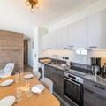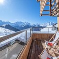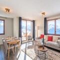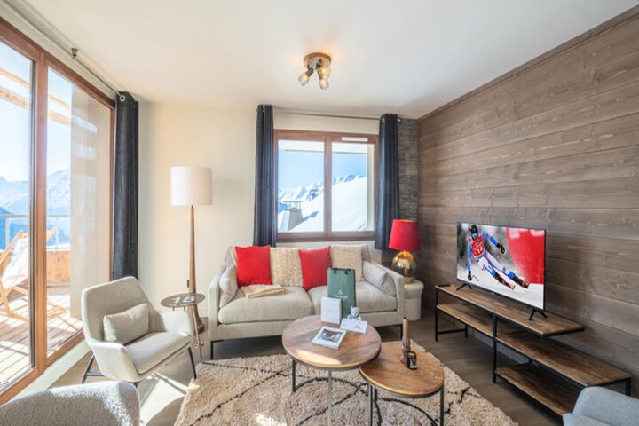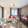 In the charming district of Vieil Alpe, where the spirit of traditional alpine villages thrives, lies the exquisite Fermes de l'Alpe residence. Just 400 meters from the resort center and steps from the slopes, this elegant retreat offers an idyllic setting for your mountain escape. The residence, inspired by the timeless architecture of alpine farms, features five beautifully crafted chalets that blend seamlessly with the breathtaking surroundings of Alpe d’Huez. Here, the crisp mountain air and stunning vistas create a perfect backdrop for unforgettable moments. \n\nThis 66m² apartment is thoughtfully designed to accommodate up to 4 adults and 2 children, making it ideal for families or small groups. The inviting living room with a cozy lounge and dining area opens to a balcony where you can soak in the serene alpine views. The open-plan kitchen is fully equipped for preparing hearty meals after a day on the slopes. The apartment boasts two double bedrooms, one with an en-suite shower room, and a charming cabin area with bunk beds for the little ones. A separate bathroom with a shower and toilet ensures convenience for all guests. \n\nGuests enjoy premium services, including beds made upon arrival, bathroom products, and mid-stay cleanings, ensuring a seamless and relaxing stay. The residence also offers Wi-Fi, indoor parking with a charging point, and ski lockers for added convenience. Pets are welcome, so your furry friends can join in on the adventure. \n\nWith its prime location near the ski lifts and resort center, Fermes de l'Alpe is the perfect base for exploring the world-class slopes of Alpe d’Huez. Whether you’re skiing, snowboarding, or simply savoring the beauty of the French Alps, this residence promises a warm and luxurious haven to return to after a day of alpine adventures.