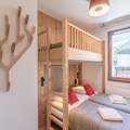Apartment A101, located on the first floor of Building A, is a cozy haven designed with local materials that exude warmth and authenticity. The bright living room invites you to relax after a day on the slopes, while the open-plan kitchen and dining area are perfect for sharing meals with loved ones. Step out onto the south-facing balcony to soak in the crisp mountain air and stunning alpine scenery. The apartment comfortably accommodates up to five guests with a double bedroom and a second bedroom featuring three single beds, including a bunk bed. A separate bathroom and toilet ensure convenience for all.
