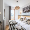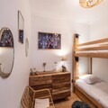 Step inside and discover a warm and inviting space designed for relaxation and togetherness. The apartment comfortably accommodates 4 adults and 2 children, featuring two elegant double bedrooms, a cozy cabin area with bunk beds, and two modern bathrooms for added convenience. The open-plan living area is perfect for unwinding after a day on the slopes, complete with a fully equipped kitchen, a dining space, and a balcony where you can soak in the crisp mountain air and breathtaking views. Thoughtful touches like linens, bathroom products, and beds made upon arrival ensure a seamless and stress-free stay.