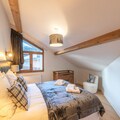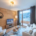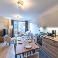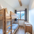 Step inside this beautifully designed apartment and discover a harmonious blend of rustic charm and contemporary elegance. The spacious living room invites you to unwind in its cozy lounge area, while the open-plan kitchen and dining space make it easy to share meals and moments together. With two double bedrooms, one featuring an en-suite shower room, a bunk bedroom with its own en-suite, and a separate bathroom with both a bathtub and shower, the layout is thoughtfully designed for comfort and privacy. The balcony offers a serene spot to enjoy your morning coffee while taking in the crisp mountain air and stunning alpine views.