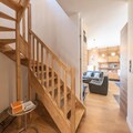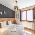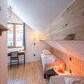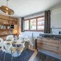 The apartment is thoughtfully designed across two levels. On the ground floor, you’ll find a separate entrance with a ski room equipped with boot dryers, an open-plan kitchen, and a living room that opens onto a sunny balcony. A double en-suite bedroom, a dining area, and a library complete the level, ensuring both functionality and comfort. Upstairs, two double bedrooms, a charming children’s room with twin beds and a desk, and a separate shower room with a toilet provide ample space for relaxation and privacy. With amenities like Wi-Fi, firewood for cozy evenings, and a double garage, every detail has been curated for your convenience.