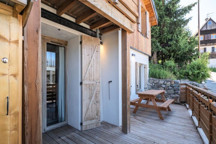 In the heart of the charming Vieil Alpe district of Alpe d'Huez, this exquisite apartment in the Quartz residence offers an unparalleled alpine retreat. With its prime location, you’ll enjoy ski-in/ski-out access and be just steps away from the ski lifts, ensuring seamless days on the slopes. The south-facing terrace invites you to bask in the sun while taking in breathtaking mountain views, creating the perfect setting for relaxation after a day of adventure. The warm wooden decor and bright interiors exude a cozy mountain ambiance, making it a haven for winter sports enthusiasts and nature lovers alike. \n\nThe 45m² apartment is thoughtfully designed to accommodate up to four guests. The open-plan kitchen flows into a welcoming living and dining area, ideal for shared meals and cozy evenings. The double bedroom and a second bedroom with a bunk bed provide comfortable sleeping arrangements for families or small groups. A modern bathroom with a bathtub and toilet ensures convenience, while the spacious 38m² terrace offers a private outdoor escape to soak in the alpine atmosphere. \n\nThe residence boasts excellent amenities, including a ski locker with a boot dryer, bicycle storage, and complimentary Wi-Fi. Guests are greeted with thoughtful touches such as made-up beds, premium linens, and bathroom products, ensuring a seamless and luxurious stay. The end-of-stay cleaning service allows you to focus solely on enjoying your holiday. \n\nLocated in the vibrant Vieil Alpe district, you’ll find a wealth of nearby attractions, from the ESF ski school and cable cars to a sports center with a swimming pool, gym, and cinema. The area’s shops and restaurants offer everything from local delicacies to lively après-ski experiences. Whether you’re here for thrilling descents or tranquil mountain moments, this apartment is your gateway to an unforgettable alpine escape.
