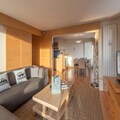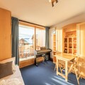 Spanning an impressive 96 m², this spacious apartment is designed to host up to 4 adults and 2 children, making it perfect for families or small groups. The living room invites relaxation with its cozy lounge area, while the open-plan kitchen and dining space are ideal for sharing meals and stories after a day on the slopes. The layout includes two double bedrooms, one featuring an en-suite shower room, and a charming bunk room with an additional single bed for the little ones. A separate shower room and toilet ensure convenience for all guests.