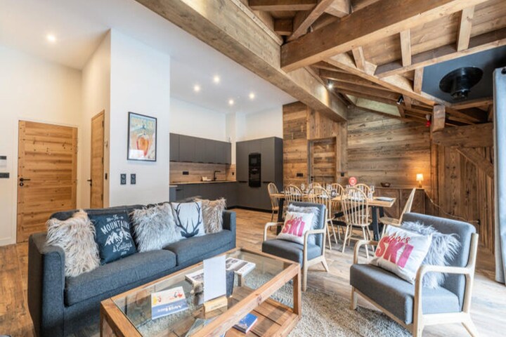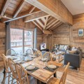 Spanning 105 m², this elegant apartment comfortably accommodates up to eight guests. The thoughtfully designed layout includes a cozy living room with a lounge, an open kitchen, and a dining area that opens onto an east-facing terrace, perfect for soaking in the morning sun. With two double bedrooms, an additional double bedroom with an en-suite shower room, and a sleeping alcove with bunk beds, the space is ideal for families or groups of friends. Modern conveniences such as Wi-Fi, a ski locker, and indoor parking ensure a seamless stay, while the included services like beds made upon arrival, bathroom products, and end-of-stay cleaning add an extra touch of ease and luxury.