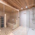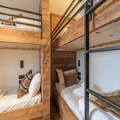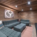 Designed with elegance and comfort in mind, the chalet features five en-suite bedrooms accommodating up to eight adults and four children. The master bedroom, with its king-size bed and private south-facing balcony, offers a serene sanctuary, while the children’s room with bunk beds creates a playful haven. The living area is a masterpiece of modern alpine design, with a cozy fireplace, open-plan kitchen, and a spacious dining area that opens onto a sunlit terrace. Relax in the outdoor jacuzzi as you soak in the panoramic views, or unwind in the wellness area complete with a sauna and shower. For entertainment, the home theater room with an Xbox and Apple TV ensures fun for all ages.