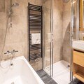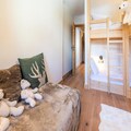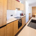 Spanning an impressive 130m², the apartment is thoughtfully designed to accommodate 4 adults and 4 children in comfort and style. The open-plan kitchen is fully equipped for culinary adventures, while the spacious dining area and cozy TV lounge invite you to relax and reconnect after a day of exploration. The layout includes two en suite double bedrooms, a children’s room with two bunk beds, and additional bathrooms for convenience. A magnificent terrace offers a serene space to unwind and soak in the alpine ambiance.