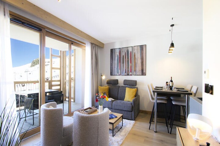 Imagine waking up in a serene alpine retreat where the slopes are just outside your door. This charming 45m² 2-room cabin apartment is nestled in a brand-new residence that offers the ultimate ski-in/ski-out experience. Perfectly designed for comfort and relaxation, it combines modern amenities with the timeless allure of the French Alps. After a day on the slopes, unwind in the residence’s luxurious indoor pool, rejuvenate in the sauna or steam room, or indulge in the sensory showers. For those who love to stay active, a fully equipped gym is also at your disposal.