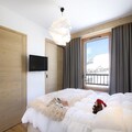 High above the alpine slopes, this stunning top-floor apartment offers a perfect blend of modern luxury and mountain charm. With its exposed wooden beams and spacious, light-filled interiors, this retreat invites you to relax and unwind after a day of adventure in the French Alps. The large southwest-facing balcony provides breathtaking views of the slopes, making it an ideal spot to enjoy a morning coffee or an evening glass of wine while soaking in the serene mountain atmosphere. \n\nInside, the apartment boasts a thoughtfully designed layout featuring a bright living and dining area, a fully equipped separate kitchen, and three cozy bedrooms. Two bedrooms are furnished with comfortable double beds, while the third offers two single beds. A sleeping alcove with bunk beds is perfect for children or additional guests. Modern amenities include smart TVs in every bedroom, a washing machine and dryer, and an elegant ethanol fireplace that adds a warm and inviting touch. The apartment also features a bathroom, a shower room, and a separate toilet for added convenience. \n\nThe residence itself is a haven of relaxation and activity. With ski-in/ski-out access, you can step directly onto the slopes, while the on-site amenities include a swimming pool, gym, sauna, steam room, and sensory showers. Two garages equipped with electrical outlets ensure easy parking and charging for electric vehicles. \n\nLocated in the heart of the French Alps, this property is surrounded by pristine natural beauty and offers easy access to nearby ski lifts, hiking trails, and charming alpine villages. Whether you’re here for winter sports or summer adventures, this apartment promises an unforgettable stay with all the comforts of home and the luxury of a high-end mountain retreat.