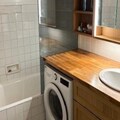 Spanning 75m², the apartment comfortably accommodates up to eight guests. The master bedroom features a plush double bed, while the second bedroom is equipped with four snug bunk beds, making it perfect for families or groups. The living room, with its inviting sofa bed and TV, is a great spot to unwind after a day of exploration. The kitchen is fully equipped with modern appliances, including a stove with an electric oven, refrigerator, dishwasher, and microwave, ensuring you have everything you need to prepare hearty meals. A bathroom with a bathtub and a washer-dryer adds to the convenience, while the separate toilet ensures privacy.