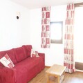 Inside, the apartment is thoughtfully designed to maximize comfort and functionality. The living room features a pull-out sofa, ideal for relaxing after a day on the slopes. The kitchen is equipped with modern appliances, including a microwave, ceramic hobs, refrigerator, and dishwasher, ensuring you have everything you need to prepare hearty meals. The bathroom offers a bathtub with a toilet, providing a soothing space to unwind. A dedicated ski locker adds convenience, keeping your gear organized and ready for the next adventure.