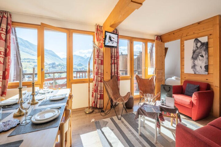 High above the valley floor, with sweeping views of the majestic Oisans peaks, this charming apartment in the Ours Blanc residence offers a quintessential alpine escape in the heart of Alpe d’Huez. Located on Avenue des Jeux, this tenth-floor retreat combines the convenience of resort living with the tranquility of panoramic mountain vistas, making it an ideal choice for families and small groups seeking a memorable getaway. Just 400 meters from the cable car, the slopes are within easy reach, ensuring you can make the most of your time on the mountain.