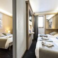 The mini-suites, accommodating up to five guests, are thoughtfully designed to provide a cozy and functional space for your stay. Each suite features two connecting rooms, offering flexibility with double or twin beds, a modern shower room, and a separate WC. After a day on the slopes, unwind on the spacious south-facing terrace, soaking in the sun and the spectacular views. The full-board restaurant, spread over two levels, and the expansive bar create the perfect setting for shared meals and lively evenings with loved ones.