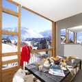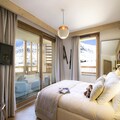 At the edge of the breathtaking French Alps, this luxurious 98m² apartment invites you to experience the perfect blend of elegance and alpine charm. Bathed in sunlight, the spacious living room opens onto a 13m² balcony, offering panoramic views and a serene spot to enjoy your morning coffee or evening glass of wine. Whether you're here for winter sports or summer adventures, this residence provides a tranquil yet vibrant retreat for up to eight guests. \n\nInside, you'll find thoughtfully designed spaces that cater to comfort and convenience. The living/dining area features a large TV for cozy evenings, while the fully equipped kitchen boasts modern appliances including an induction hob, oven, microwave, dishwasher, and even a raclette grill for authentic French dining experiences. Bedrooms are stylishly appointed, with smart TVs and plush bedding, ensuring restful nights. The apartment also includes a wine cellar, two garages, Wi-Fi, and premium services such as beds made upon arrival, towels, welcome products, and end-of-stay cleaning. \n\nThe residence itself is a haven of relaxation and activity. With ski-in/ski-out access, you can hit the slopes effortlessly. After a day of adventure, unwind in the swimming pool, gym, sauna, steam room, or indulge in sensory showers. The sunny location and high-end amenities make this a standout choice for discerning travelers. \n\nWhether you're exploring the nearby ski slopes or hiking trails, this 5-star accommodation promises an unforgettable alpine escape. With its blend of luxury, comfort, and proximity to nature, it’s the ideal base for creating cherished memories in the French Alps.