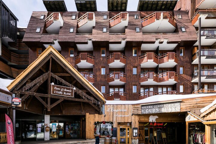 High above the valley, where the sun graces the peaks with golden light, Residence L'Ours Blanc offers a unique alpine retreat in the heart of Alpe d'Huez. This vibrant resort is renowned for its exceptional sunshine and breathtaking mountain vistas, making it a favorite destination for families and adventurers alike. Imagine mornings spent sipping coffee on your private balcony, with views stretching across snow-covered slopes and evenings exploring the lively village center just steps away. Here, every moment feels like a celebration of alpine charm and modern comfort. \n\nYour apartment, located on the 4th floor, is thoughtfully designed to accommodate up to six guests. It features a cozy living room with a sofa bed, a serene bedroom with a double bed, and a charming alcove with bunk beds perfect for children. The fully equipped kitchen invites you to prepare hearty meals after a day on the slopes, while two bathrooms ensure convenience for all. Additional amenities include WiFi access, parking options, and pet-friendly accommodations, making it ideal for families or groups traveling together. \n\nStep outside and discover the Olympic ice rink, a shopping mall, and a variety of activities all within 100 meters of your residence. A free shuttle service whisks you to the ski lifts in under five minutes, granting access to 250 kilometers of world-class slopes. Whether you're skiing, snowboarding, or simply soaking in the sunshine, Alpe d'Huez promises unforgettable experiences for every visitor. \n\nChoose Residence L'Ours Blanc for your next alpine getaway and immerse yourself in the magic of the mountains. With its perfect blend of tradition and modernity, this property ensures a holiday filled with comfort, adventure, and lasting memories.