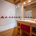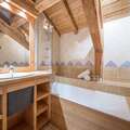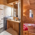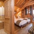 The main entrance to the lovingly designed chalet is on the first floor, with a ski room right next to it. The living and dining room is on this floor and is flooded with light thanks to the large windows. The focal point of the room, the beautiful stone fireplace, creates a cosy atmosphere. The solid dining table is large enough to accommodate all guests, while an open window to the kitchen ensures that those cooking can keep in touch with those in the living room. Spread over 3 floors, the chalet has 6 bedrooms, each with its own bathroom and direct access to a balcony or even straight onto the slopes.