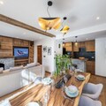 The apartment features a fully equipped open kitchen and a spacious living area with a dining room and lounge. A south-facing balcony provides a sunny spot to unwind, while the individual ski room with boot warmer ensures your gear is kept ready for the slopes. Additional amenities include WIFI, a washing machine/dryer, and end-of-stay cleaning (excluding kitchen).