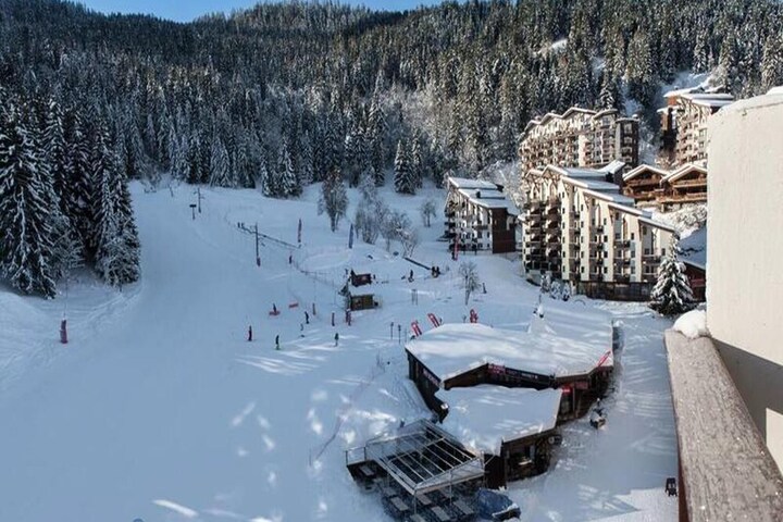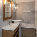 This cozy 50m² apartment is located in the heart of La Tania, offering a perfect retreat for 2 adults and 2 children. The apartment features a double or twin bedroom, a children's room with bunk beds, and two bathrooms—one with a shower and WC, and another with a toilet. The living room is spacious, with a lounge and dining area, and opens onto a sunny, south-facing terrace, perfect for enjoying the fresh mountain air. The residence does not accept pets, ensuring a serene and peaceful atmosphere for all guests. A private ski room and a parking space in the shared covered garage add convenience for those traveling with skis or vehicles.