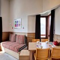 The apartment features an open kitchen with a stovetop, oven, and fridge, along with a comfortable living area and dining space. Wi-Fi is available for an additional cost, and daily cleaning or towel services can be requested at reception. Ideally located near ski slopes and village amenities, this apartment offers a relaxing stay in La Tania.