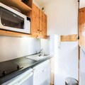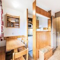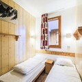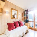 This ski-in/ski-out apartment, located within a residence comprising two interconnected chalets, comfortably accommodates up to six guests. It features one bedroom with two single beds, a cabin area with two single bunk beds, and a sofa bed in the living room. Pets are allowed for an additional fee, but it's essential to confirm with the reception as restrictions may apply depending on the specific accommodation.