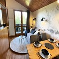 Your vacation rental is located in the Résidence Les Brigues. Located in Courchevel 1550, it is made up of two communicating chalets, whose architecture blends perfectly into the surrounding landscape.