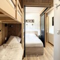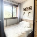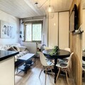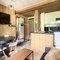 Inside, the apartment is thoughtfully designed to accommodate up to six guests. The living room features a comfortable sofa bed and a TV, creating a warm and inviting space to relax after a day on the slopes. A sleeping alcove with a bunk bed and a separate bedroom with a double bed ensure restful nights for all. The open-plan kitchen is fully equipped, making it easy to prepare hearty meals to enjoy with family or friends. A modern bathroom and separate toilet add to the convenience, while the tasteful alpine decor enhances the cozy atmosphere.